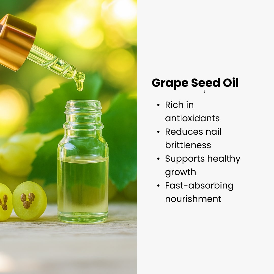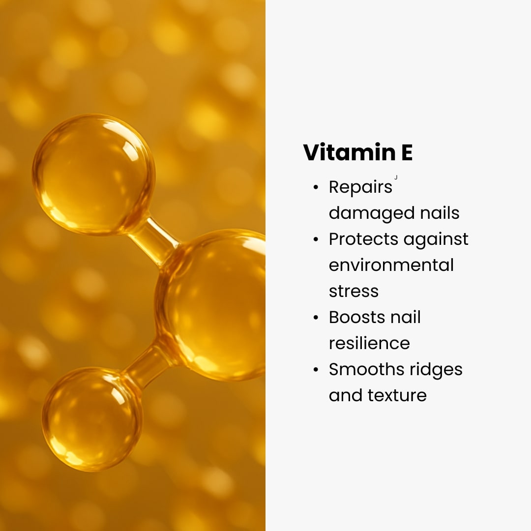 A blend of essential vitamins (including E and others) that support healthy nail growth, smooth texture, and overall resilience. (Vegan)