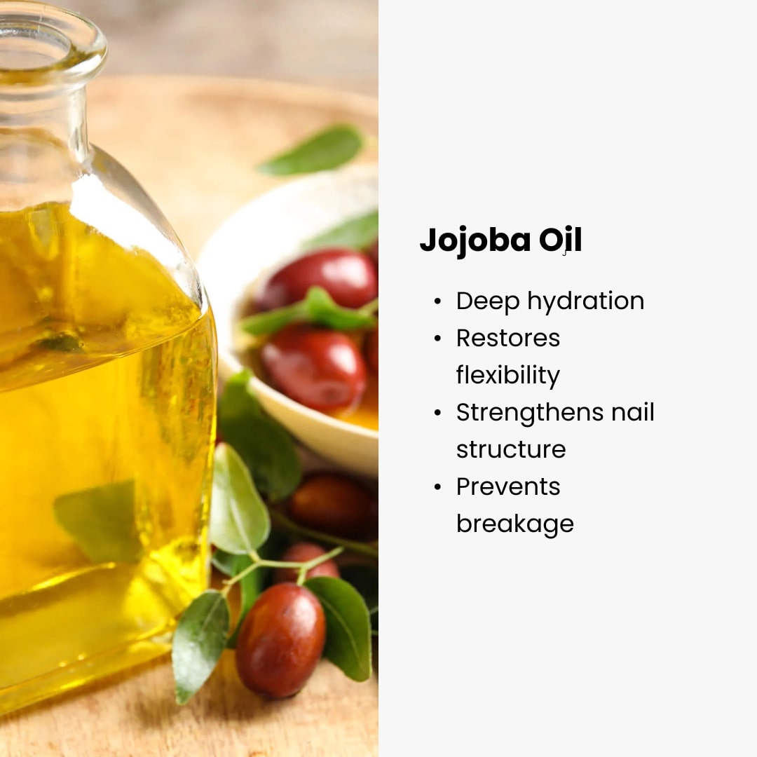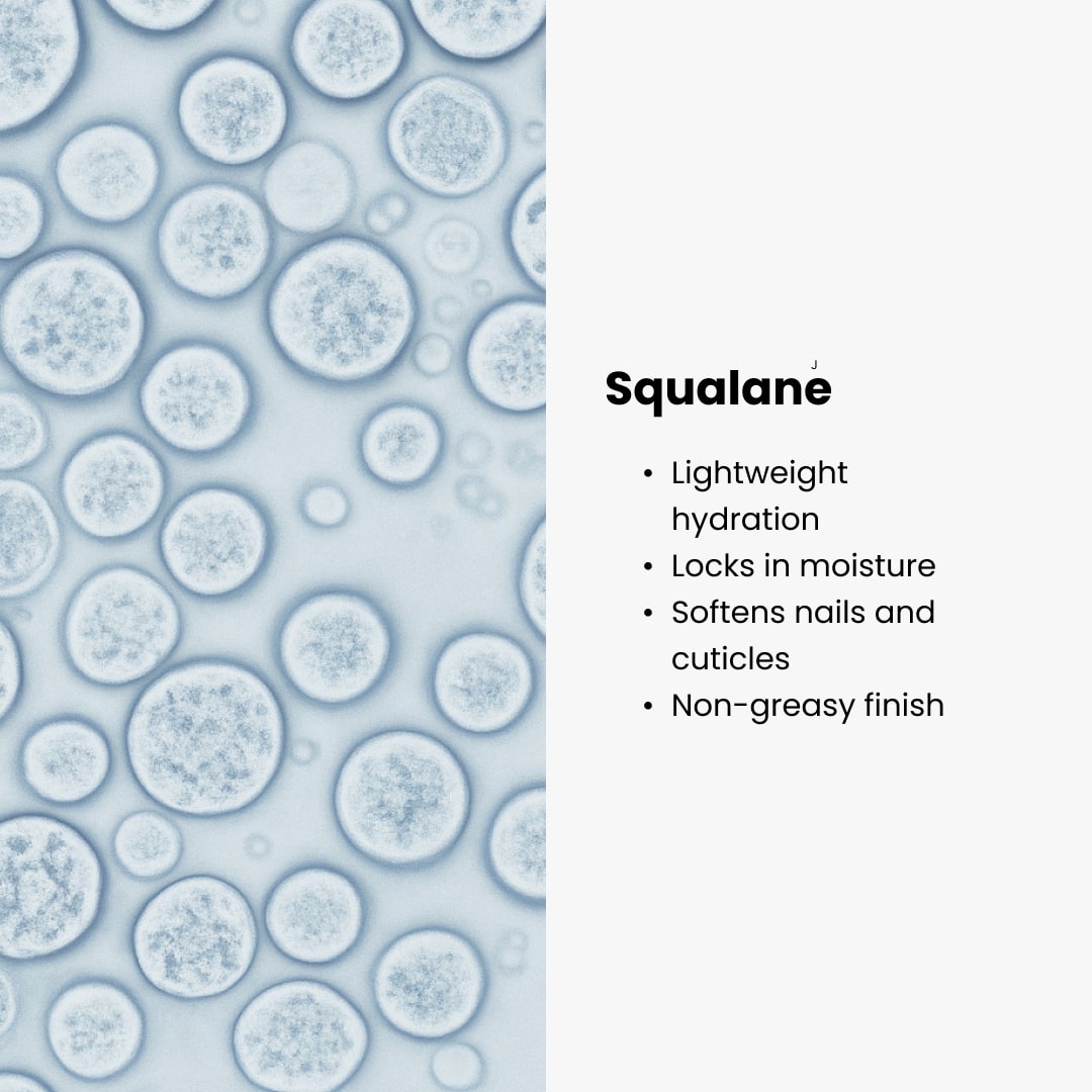 A plant-based oil that mimics the skin’s natural oils, delivering lasting hydration and restoring nail flexibility. (Vegan)